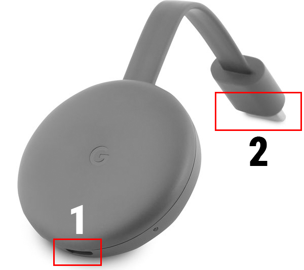- HDMI IN -porttiin kytketään lähettävä HDMI-laite. Portissa on yleensä oletuksena kiinni Chromecast-laite, mutta Chromecastin tilalle voi myös vaihtaa HDMI-kaapelin ja kytkeä sen toiseen päähän lähettävän laitteen (esimerkiksi tietokoneen).
