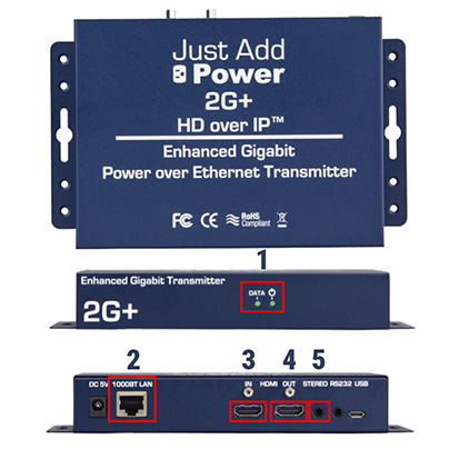 - Laitteessa on virta, kun oikean puoleinen ledi palaa vihreänä. Data:n kohdalla palaa vihreä valo, jos laite lähettää kuvaa.